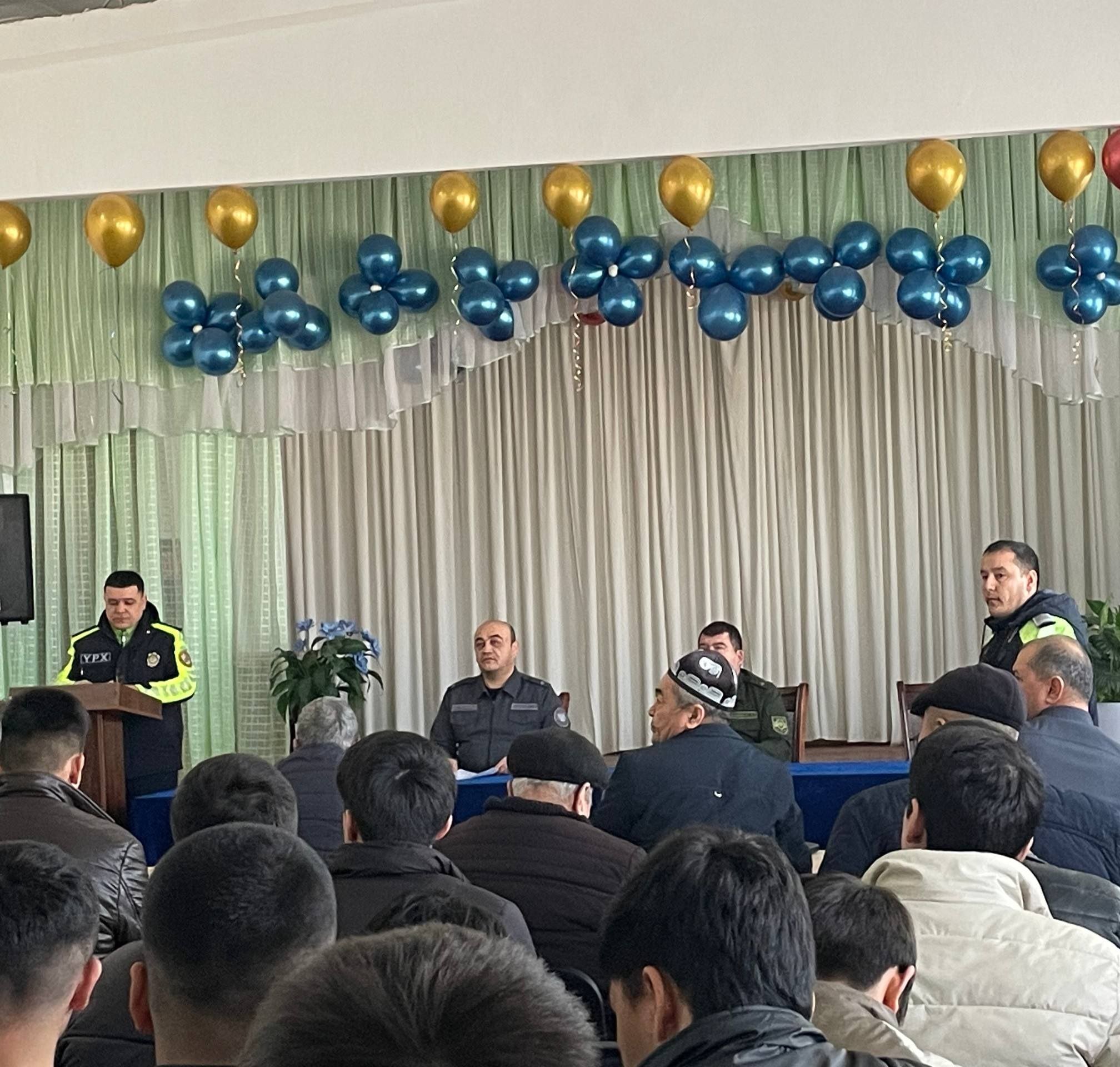 11.03.2026 йил куни 31-сон АФЧСМ мактабда Туман пракурори Падпалковник О. Эшчанов, ИИБ бошлиги Падпалковник Ж.Мадримов ва Вилоят ИИБ ЙХХБ Ахборат булими бошлиги Капитан Ш.Бобожановлар иштирокида "Махаллалардаги жиноятчиликка карши курашиш чора тадбирлари" тугрисида Йигилиш утказилди.